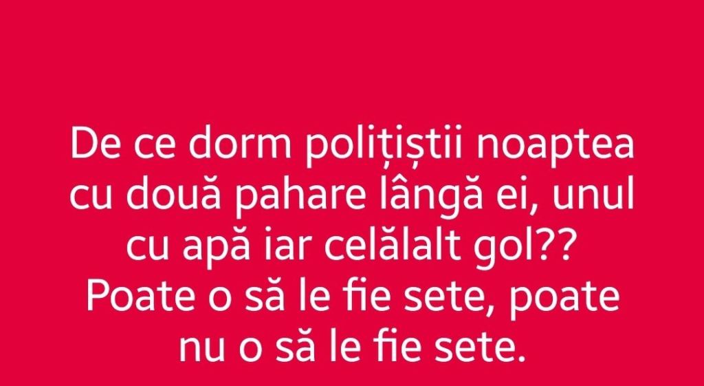De ce dorm polițiștii noaptea cu două pahare lângă ei, unul cu apă iar celălalt gol??