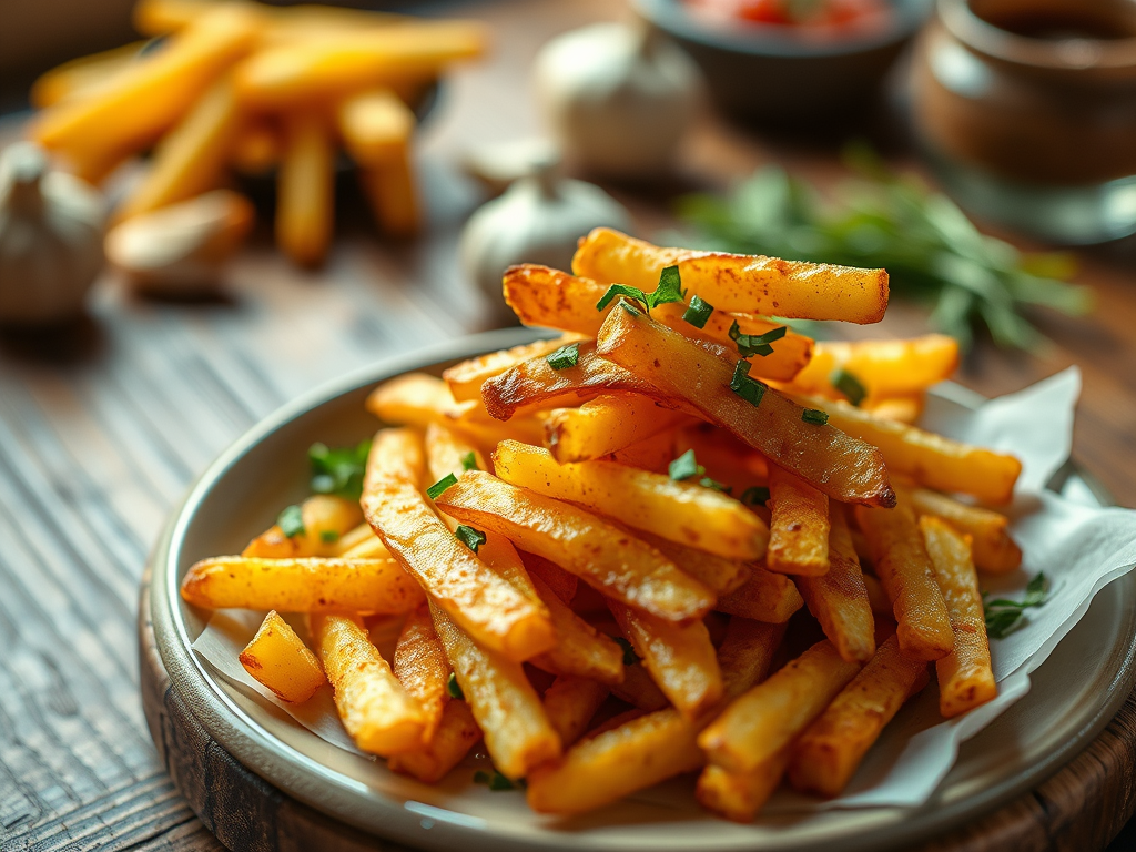 Cartofii prăjiți la airfryer sunt o alternativă și mai sănătoasă, deoarece necesită doar o cantitate minimă de ulei (sau chiar deloc). Tăiați în felii subțiri, se prăjesc în airfryer la 180°C timp de 20-25 de minute, amestecându-i pe la jumătatea timpului pentru a se rumeni uniform.