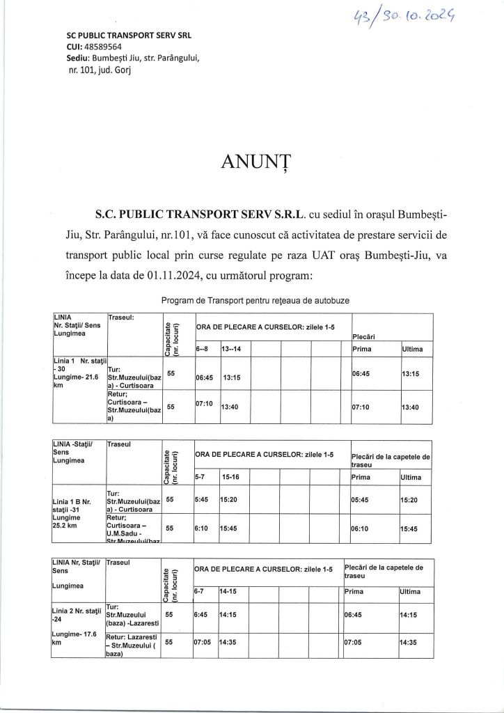 Începând cu 1 noiembrie 2024, autobuzele din orașul Bumbești Jiu își vor începe activitatea.