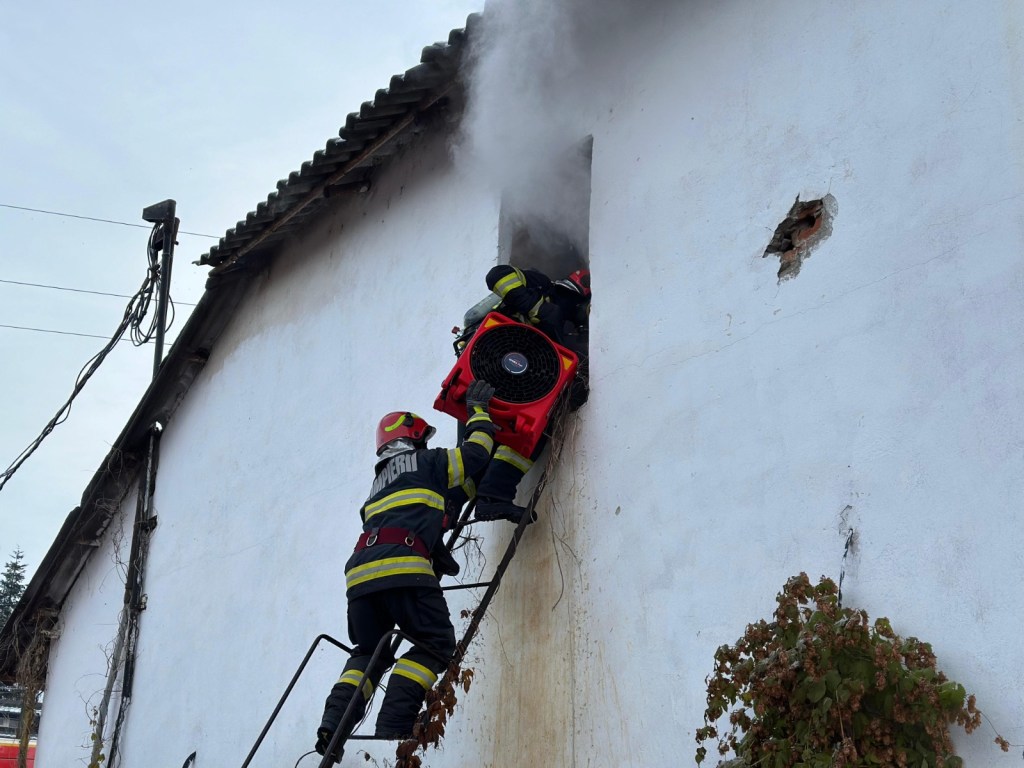„Incendiul se manifestă în interiorul clădirii, cu degajare de fum. Se acționează cu ventilatoare pentru evacuarea fumului dens,” spun reprezentanții ISU.