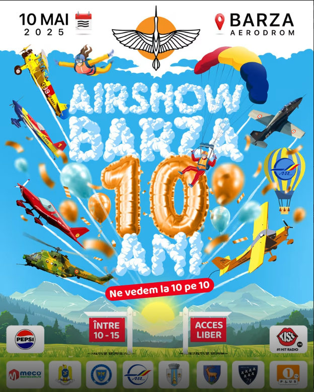 „Nu rata ocazia de a te bucura de un spectacol aviatic de excepție pe 10 mai, la 10! Vino alături de familie și prieteni pentru o zi memorabilă! Unde? Aerodromul Barza Târgu Jiu. Intrare liberă!”, au transmis organizatorii.