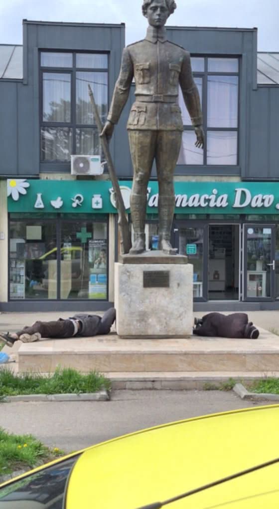 În ultimele zile, doi oameni ai străzii au fost surprinși de trecători dormind la baza statuii Ecaterinei Teodoroiu din zona CAM a municipiului Târgu Jiu. Deși au fost îndepărtați de polițiștii locali, aceștia revin constant în același loc.