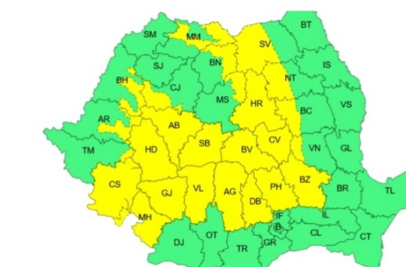 Potrivit Administrației Naționale de Meteorologie, ziua de marți vine cu avertizare cod galben, valabilă între orele 12:00 și 23:00. Aversele torențiale, însoțite de descărcări electrice, intensificări de vânt și, pe alocuri, grindină, sunt așteptate în zonele montane și submontane, în nordul Olteniei și al Munteniei, în sudul și estul Transilvaniei, dar și în sudul Banatului.