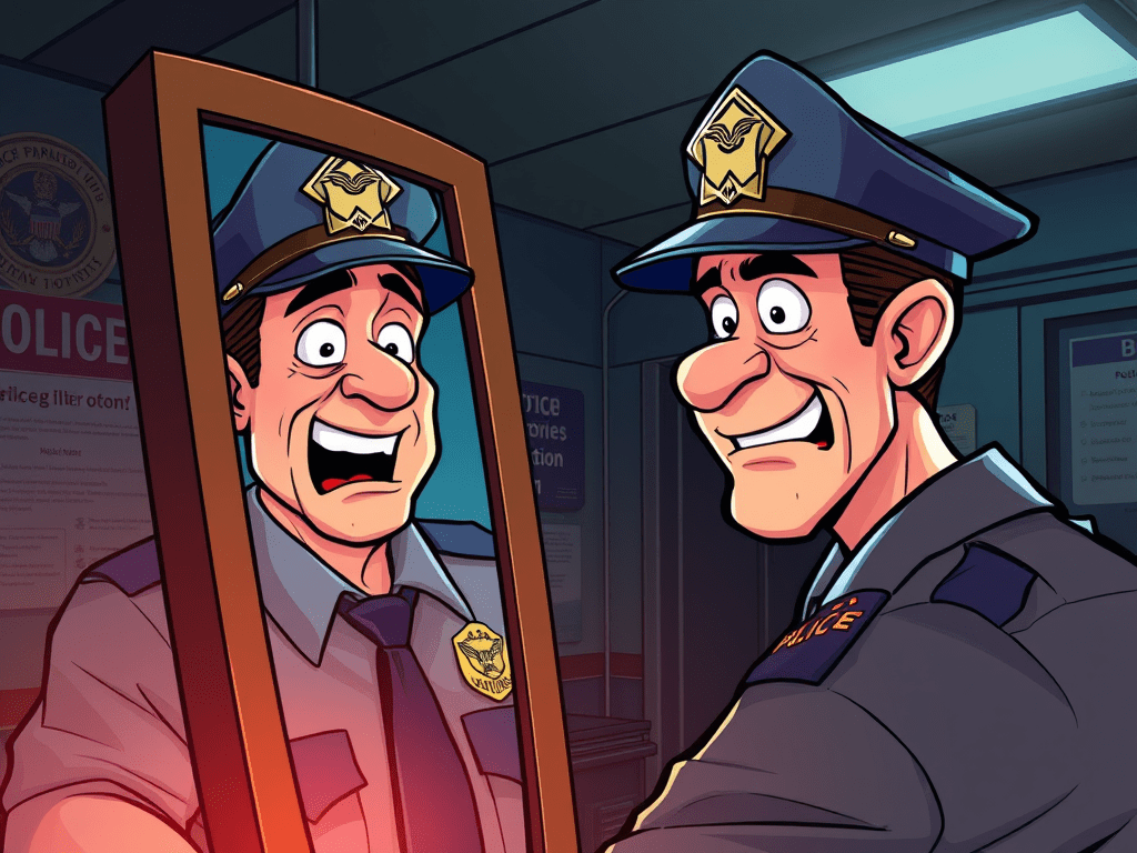Un polițist găsește o oglindă pe jos. Se uită în ea și zice: