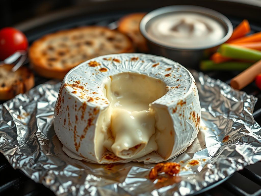Pusă pe o folie de aluminiu și lăsată pe grătar până devine moale în interior, camembertul se transformă într-un dip delicios. Merge perfect cu pâine prăjită sau legume.