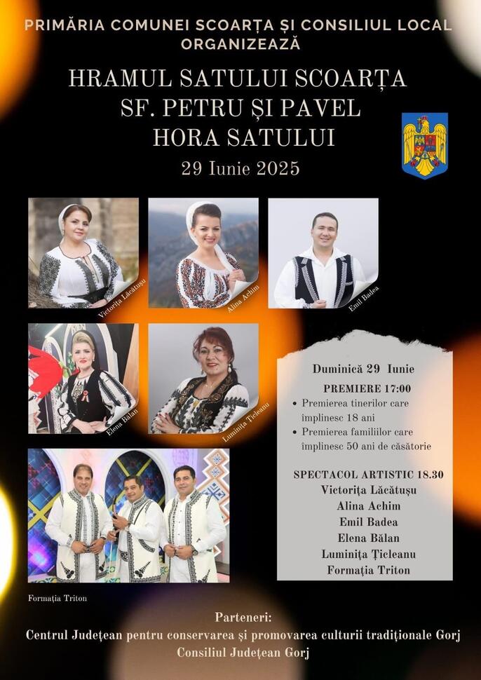 Comuna gorjeană Scoarța se pregătește de sărbătoare. Pe 29 iunie 2025 va avea loc Hramul satului Sf. Petru și Pavel, un eveniment cu tradiție în zonă.