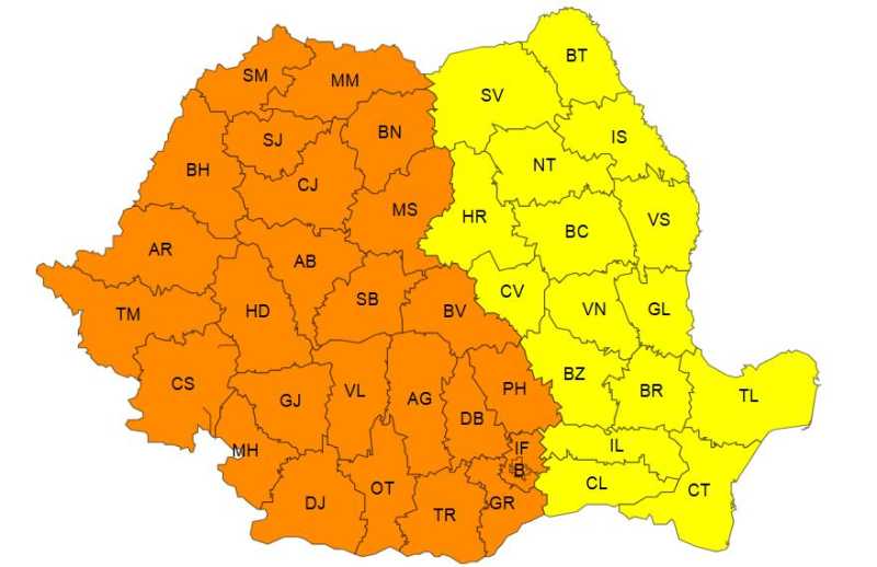 Administrația Națională de Meteorologie a emis o avertizare Cod portocaliu de caniculă valabilă în intervalul 4 iulie, ora 10:00 – 5 iulie, ora 10:00, pentru mai bine de jumătate din țară. Zonele vizate includ Banatul, Crișana, Maramureș, Oltenia, mare parte din Transilvania și vestul Munteniei. Aici, valul de căldură se va intensifica, iar disconfortul termic va deveni accentuat.