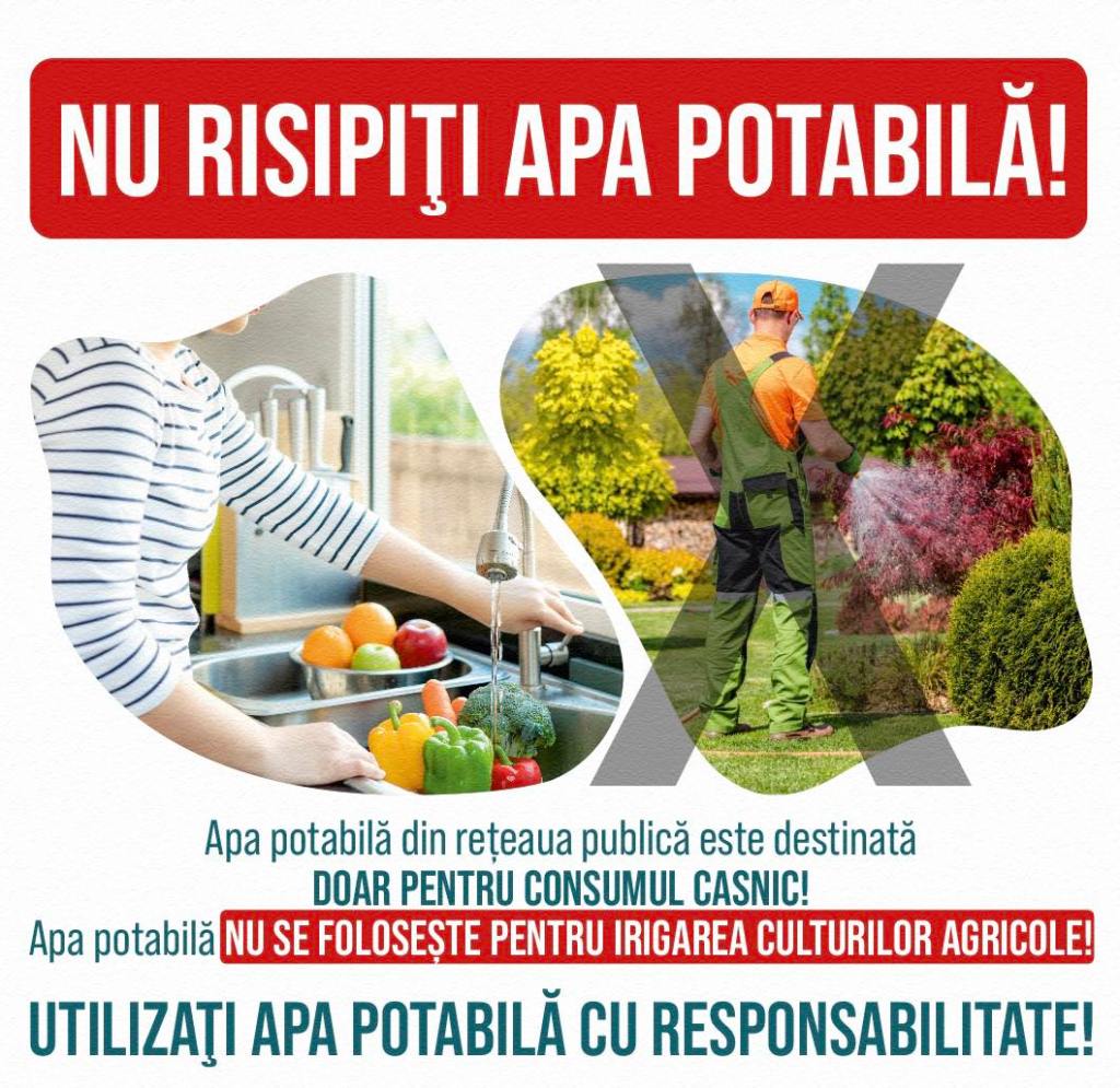 Primăria le cere oamenilor să folosească apa cu responsabilitate, mai ales că localitatea se află sub incidența unui cod roșu de caniculă. Potrivit avertismentului oficial, orice consum exagerat poate afecta negativ întregul sistem de distribuție.